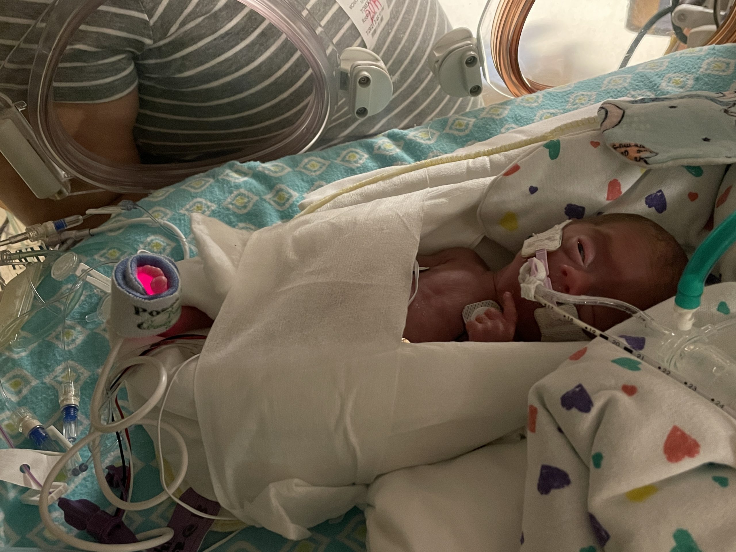 He’s been irritable with his feeds so they haven’t increased volume yet. He’ll need to be at 3-3.5mL/hr before fortification can begin. Still little to no residuals…