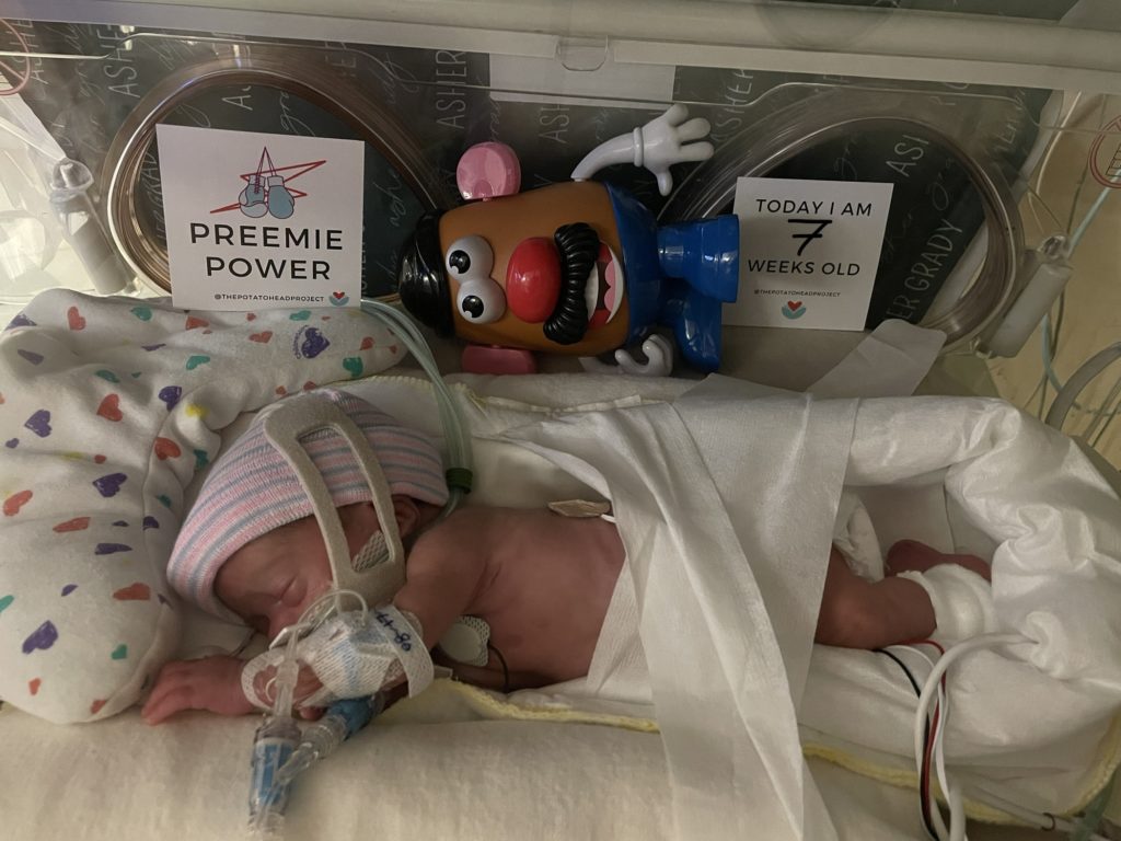 Asher is now up to 5mL/hr on his feeds. This is the highest he’s ever been and he’s tolerating it very well. He’s also being weaned from his TPN with the increase in moms milk. Talks of fortification are on the table for tomorrow…