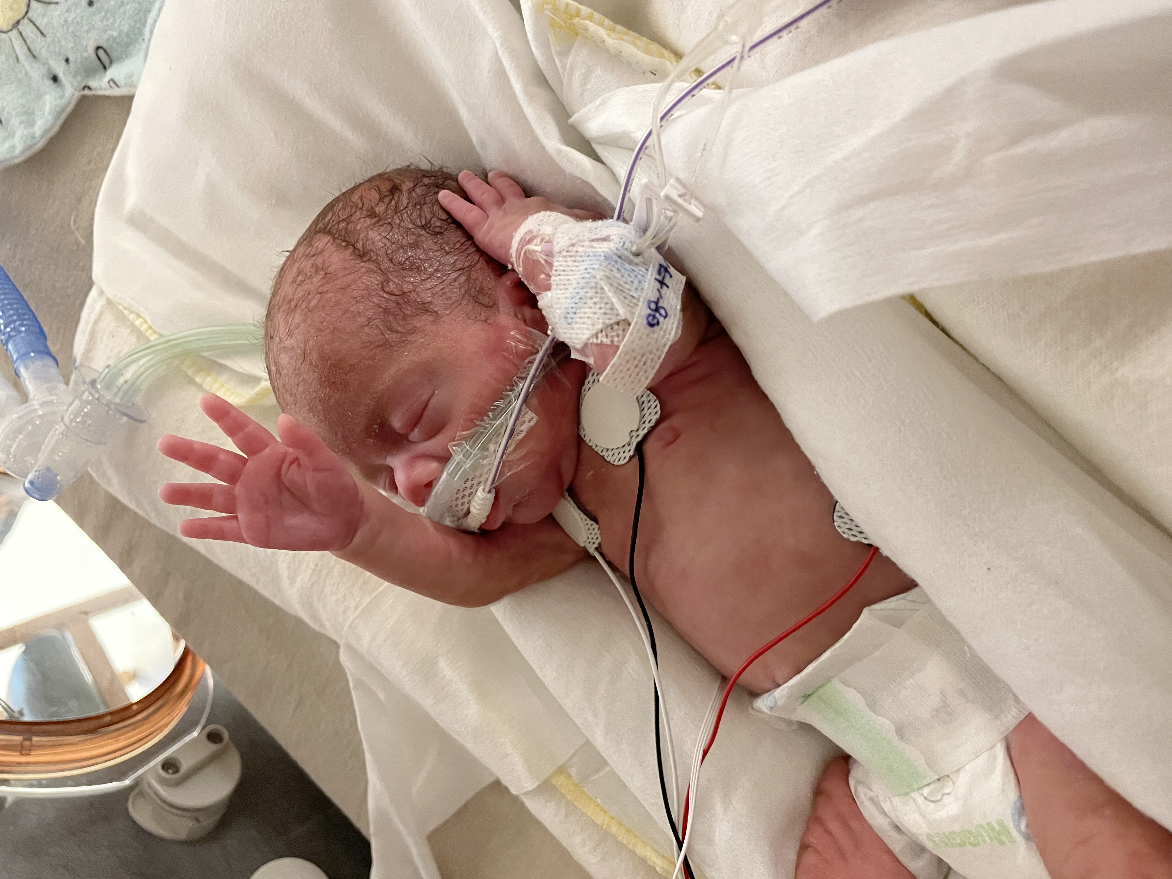 He’s still tolerating his feeds at 5mL/hr. His belly looks really good today!