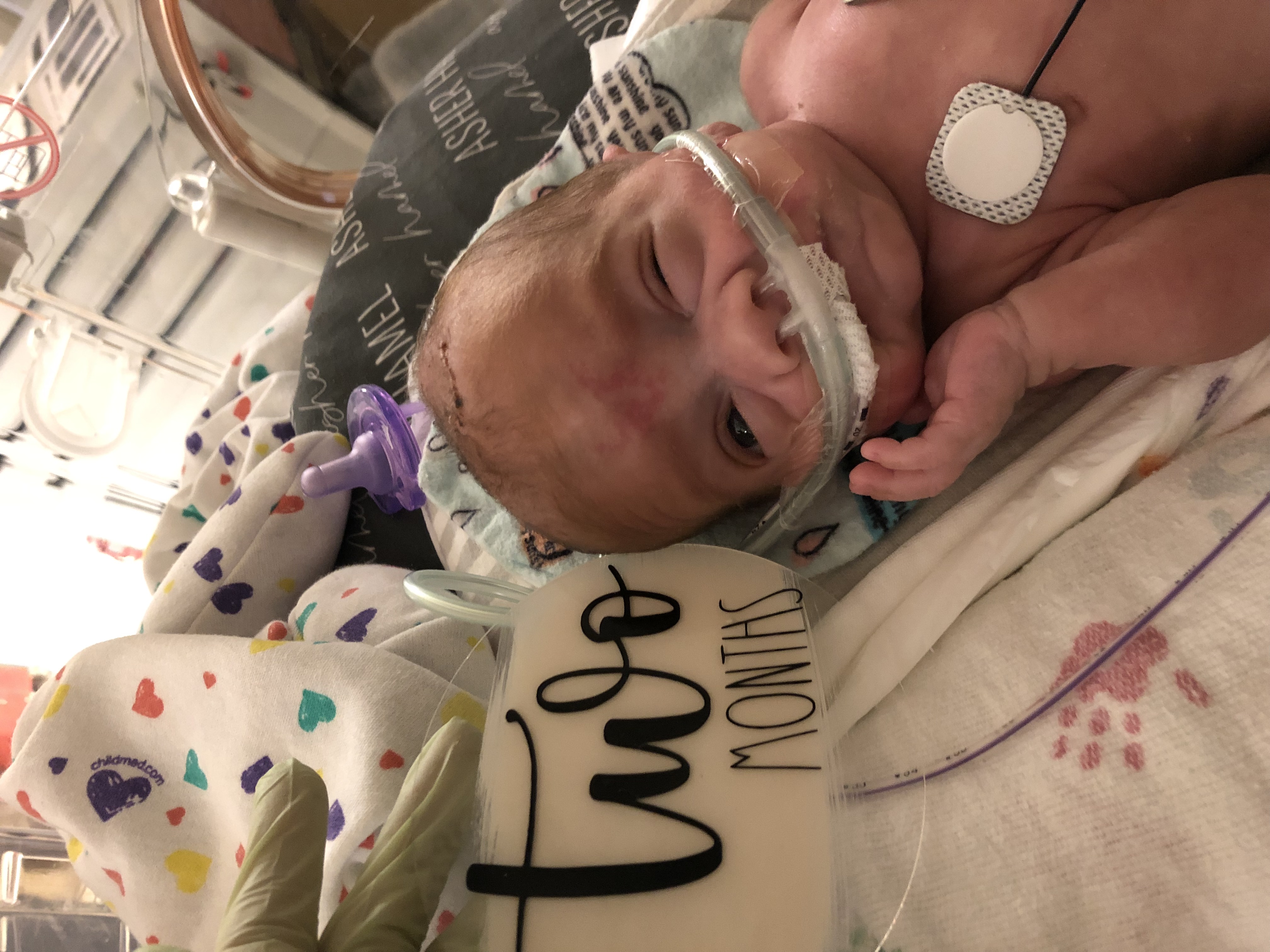 I think my favorite part of the night was of course my party hour with my favorite Nurse Kelly! We had an extra special fun party time tonight and got to take my 2 months pictures…I begged my nurse to take a couple with me too, she was a little camera shy but I talked her into it 😍😍!!