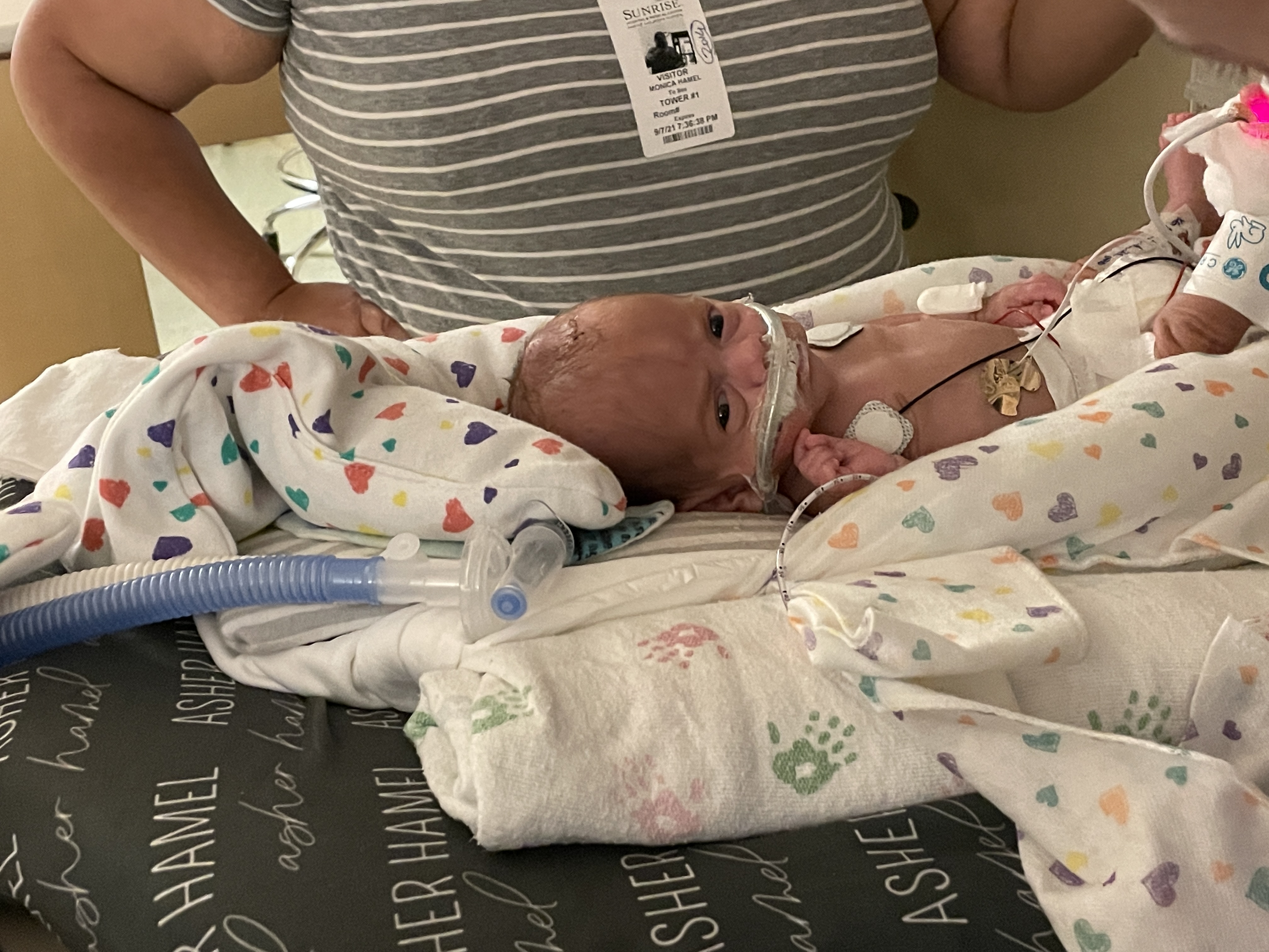 Asher’s with mom right now and high satting the entire time. He’s looking great!!