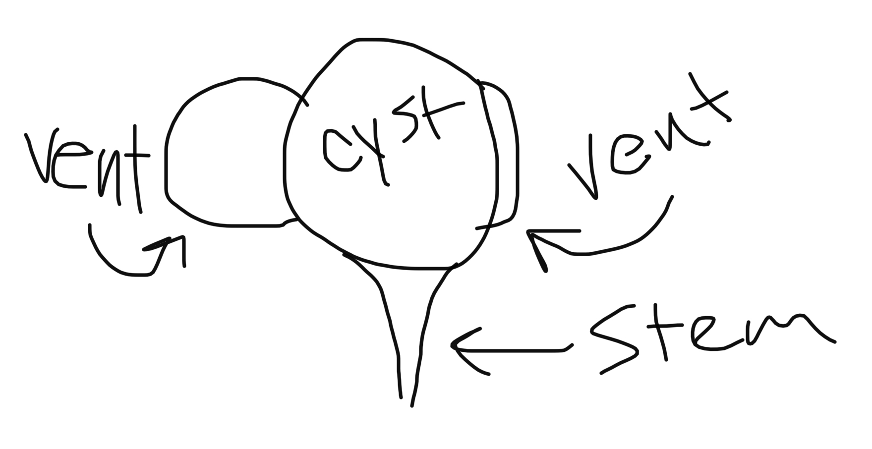 For reference, here’s a rough sketch of what the cyst looked in the MRI before surgery: