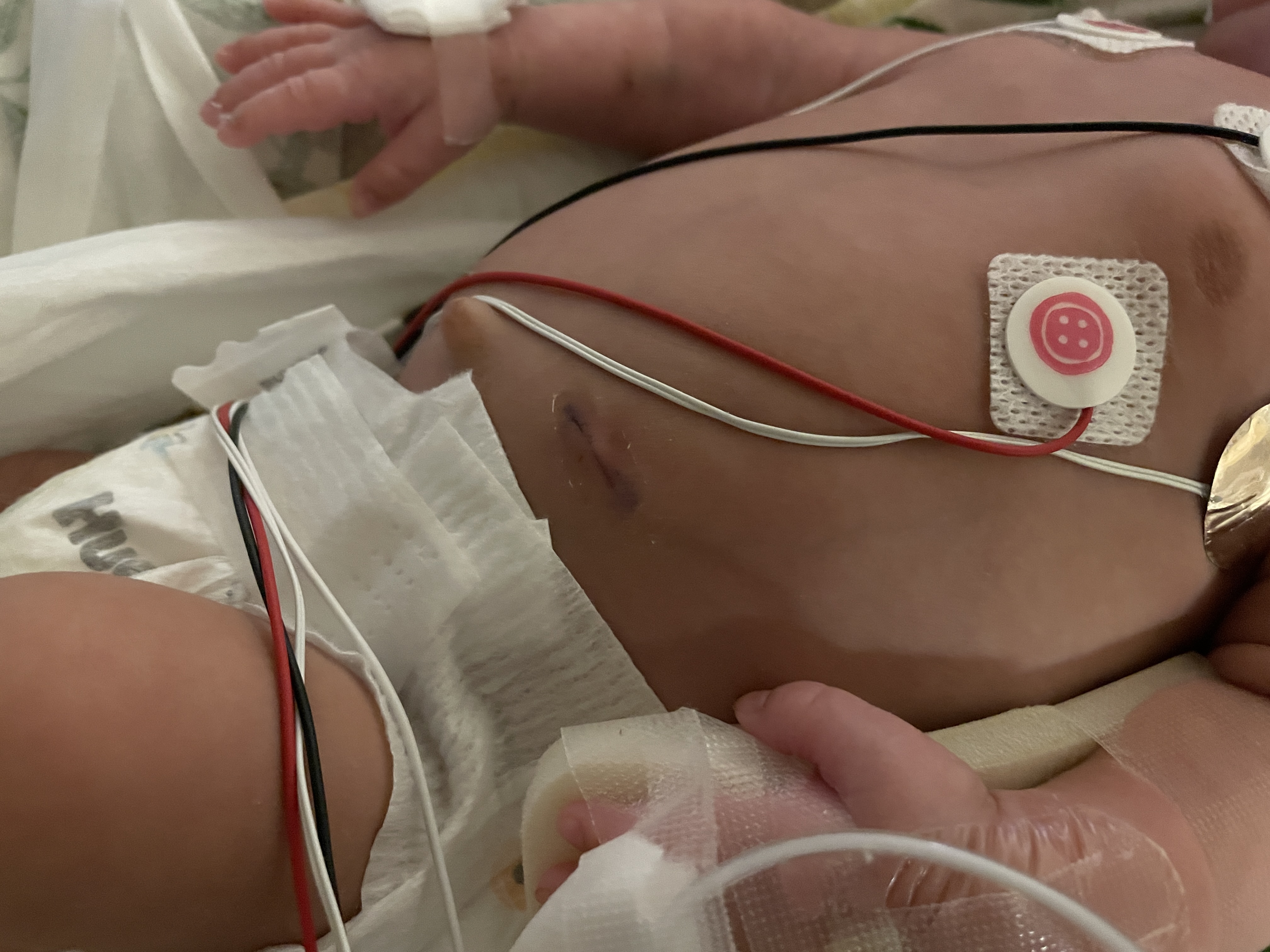 With the blood transfusion, it’s caused his bowels to “freeze”. We’ll have to wait one more day for his intestines to “turn back on” in order to reintroduce feeds. The TPN he’s on right now isn’t as robust as the one before so we’re hoping he can see some benefit from it no while not losing any more weight…